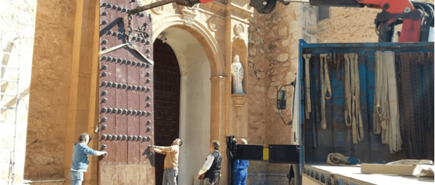 Se trata de una proceso al que también se someterá la puerta de la entrada oeste tras el paso de la Semana Santa. Según explicaba Asensio, gracias a esta actuación se han ganado algunos centímetros que facilitarán la salida de los pasos de las procesiones de "Coloraos", "Negros" y "Corbatos" y del Vía Crucis del Cristo del Consuelo.