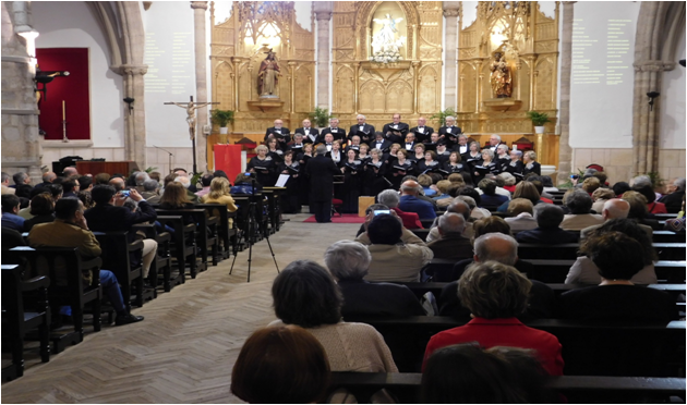 La iglesia de Santa María albergaba la noche del Domingo de Ramos una cita tradicional como es el concierto de Semana Santa de la Coral Molto Vivace. Alrededor de dos centenares de personas asistieron a este recital que estuvo presentado por el sacerdote Luis Eduardo Molina.