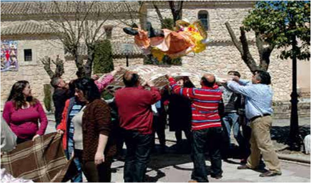 Consistente en elaborar muñecos representando a Judas ‘el traidor’, que cuelgan de las fachadas y son manteados