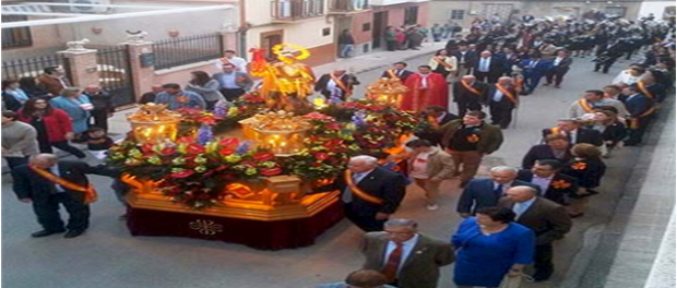 Ya sobre las ocho y media de la tarde salía la procesión desde el templo parroquial, con la presencia de gran cantidad de fieles. Sacerdote, hermano mayo y pregonero presidían la misma, a los que acompañaban el segundo teniente de alcalde, Juan Bautista Ciudad que ejercía de regidor aldeano y los portavoces de los grupos de la oposición, Amparo Flox y Fulgencio Flox, respectivamente. Cerraban el cortejo Rocío Alcaide, Fernando Caballero y Óscar Calvo.