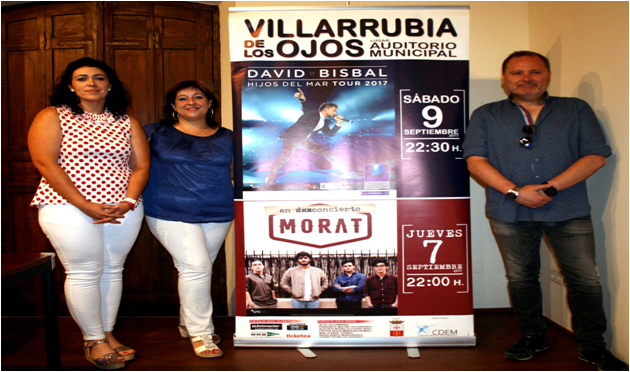 Los conciertos de Morat y de David Bisbal, los días 7 y 9 de septiembre respectivamente, son los platos fuertes de los conciertos que ha programado el Ayuntamiento de Villarrubia de los Ojos (Ciudad Real) con motivo de sus Fiestas Patronales del próximo verano, tal y como presentaron hoy la alcaldesa villarrubiera, Encarnación Medina; la concejala de Festejos, Rosa Redondo, y Agustín Lozano, de la promotora de los conciertos “Creación y Diseño de Eventos Musicales SL”, en el Museo del Quijote de Ciudad Real capital.