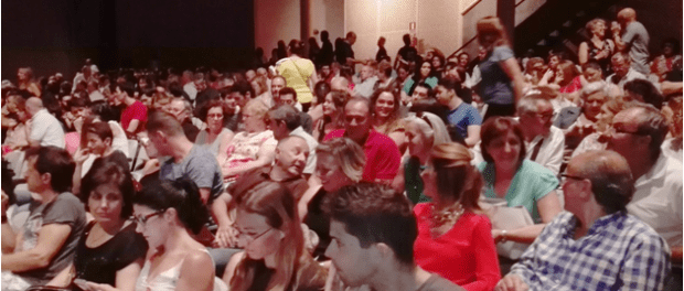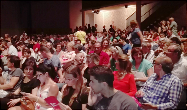 El patio de butacas del Hospital de San Juan estuvo completo, en buena parte por un numeroso grupo de daimieleños que siguieron atentamente el devenir de esta comedia amorosa. Una obra teatral que destacó por la lucidez de los parlamentos de unos personajes bien construidos, y que estuvo protagonizada por Rafa Castejón y Marta Poveda.