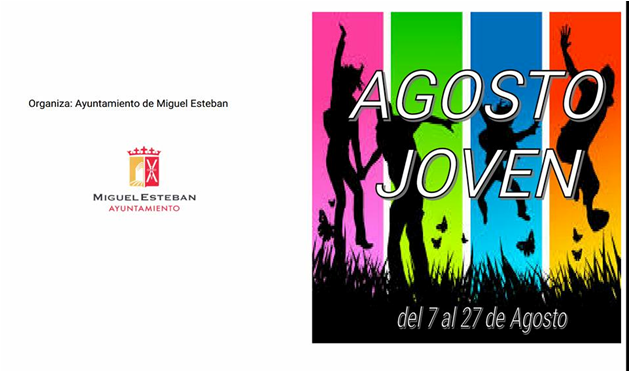 Arranca ‘Agosto Joven’, organizado por el Ayuntamiento de Miguel Esteban a través de la Concejalía de Juventud y Deportes. Desde el lunes día 7 hasta el 27 de agosto, los migueletes y migueletas podrán disfrutar de un amplio programa de actividades pensado para todos los públicos.Arranca ‘Agosto Joven’, organizado por el Ayuntamiento de Miguel Esteban a través de la Concejalía de Juventud y Deportes. Desde el lunes día 7 hasta el 27 de agosto, los migueletes y migueletas podrán disfrutar de un amplio programa de actividades pensado para todos los públicos.