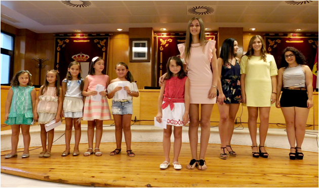 En la categoría infantil, sin embargo, la elección se realizó, como en los últimos años, a través de un sorteo en el que cada niña cogió un sobre al azar, existiendo tan sólo uno que llevaba la inscripción de Reina Infantil 2017. Sofía Fernández, de 7 años, era la afortunada, quien sorprendida y con timidez daba un paso al frente como la nueva reina infantil. El plantel de damas infantiles quedó completado con Nerea Gigante, de la academia de baile Cristina Oviedo; Celia Fernández, de ‘La Garrota’; Almudena García, de la Asociación Cultural Amigos del Arte; Sandra Cencerrero, de la Academia de Baile Amanecer y Natalia Trapero, de la academia de Baile Cumbia. Todas ellas se mostraban muy contentas por el nuevo cargo que van a ostentar desde ahora, afirmando que van a disfrutar mucho de la Feria y por supuesto, de las atracciones o de ese gran desfile inaugural del 31 de agosto.