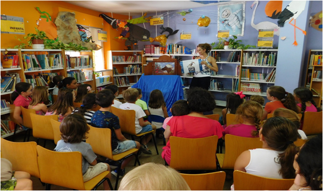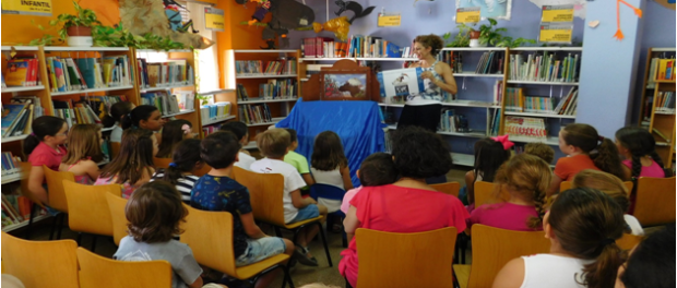 Una treintena de niños y niñas de entre 5 y 12 años, acompañados de sus padres y madres asistían este miércoles al cuentacuentos en inglés ‘¿Khamisi… what?’. La profesora Marisa García Bartall era la encargada de narrar a los pequeños el cuento tradicional ruso ‘La Zanahoria Gigante’ utilizando la técnica japonesa Kamishibai (‘teatro de papel’). Una forma de contar cuentos muy popular en Japón formado por un conjunto de láminas que tienen un dibujo en una cara y texto en la otra.
