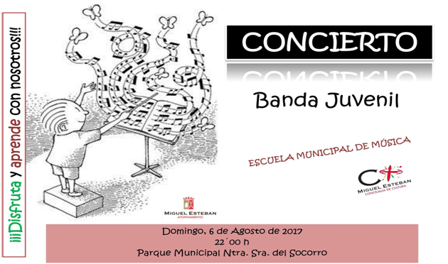 El Ayuntamiento de Miguel Esteban, a través de la concejalía de Cultura ha organizado el concierto de la Escuela Municipal de Música, que se celebrará este domingo 6 de agosto, a las diez de la noche, en el Parque Municipal Nuestra Señora del Socorro.