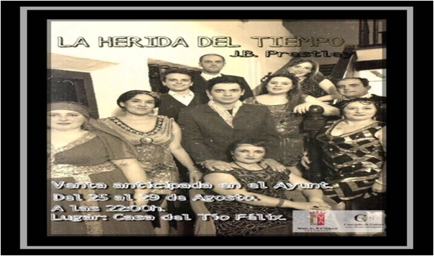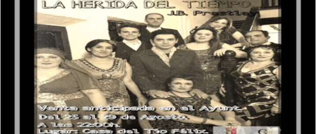 A las diez de la noche de este viernes, 25 de agosto, la Casa-Museo del Tío Félix acogerá el estreno de ‘La herida del tiempo’, un clásico teatral inglés escrito por J.B. Prestley al que darán vida los miembros del Taller de Teatro de Miguel Esteban.