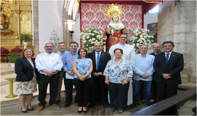 A la función, a la que asistieron una gran cantidad de fieles a la parroquia de Santa Maria la Mayor, estuvo oficiada por el salesiano Joaquín Torres, acompañado por José Carlos Sobejano, también salesiano, por Fray Javier de Maria, carmelita descalzo y Valentín Vicente Sanchez-Rojas, consiliario de la cofradía. El acompañamiento musical corrió a cargo de la Coral Municipal «Molto Vivace»