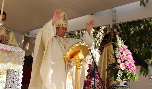 La eucaristía comenzó a las once con la proclamación previa del año Jubilar por parte del Señor Obispo de la Diócesis de Ciudad Real, Don Gerardo Melgar y por tanto de la apertura simbólica de la puerta jubilar.
