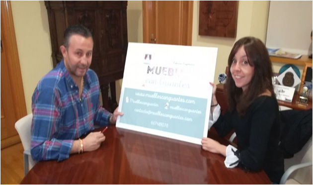 Leticia Expósito presenta al Alcalde de Malagón su proyecto “Muebles con Guantes”