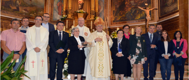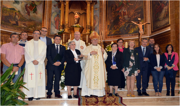 Para finalizar el acto, la Superiora general, en nombre del Instituto Calasancio, entregó al alcalde una medalla conmemorativa con motivo de la canonización del padre Faustino del discurso de Celanova, el documento pedagógico-educativo más importante del padre Faustino. También se hizo entrega al señor obispo de una reliquia de primer grado de San Faustino para que sea venerado en la iglesia catedral de la diócesis de Ciudad Real.
