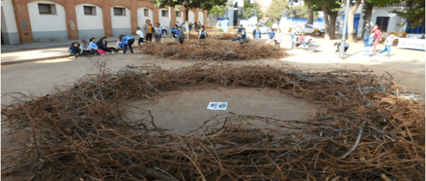 Las aves que han sobrevolado este viernes el parque de El Carmen han comprobado que los niños daimieleños comparten su misma destreza para confeccionar nidos. En poco más de media hora, los restos de poda, sarmientos o paja que se amontonaban cerca del Centro del Agua se han transformado en seis perfectos nidos gigantes gracias a los alumnos de 3º de Primaria de los colegios Albuera, La Espinosa, Divina Pastora, Infante Don Felipe y San Isidro. Una tarea en la que todos se han divertido mucho y en la que, como contaban ellos mismos, han aprendido cómo se construyen los hogares de la aves y el valor de cuidarlas.