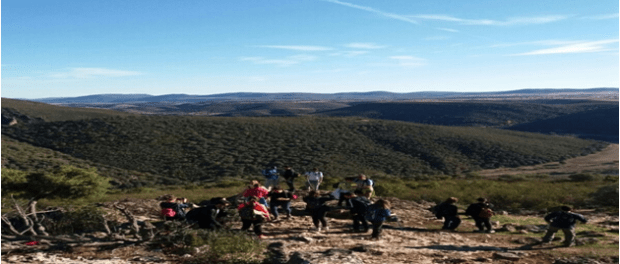 Guiados por la empresa de ecoturismo ‘Destinos Manchegos’, los jóvenes disfrutaron de unas maravillosas vistas y del Estrecho de las Hoces del río Guadiana. Un paraje de monte mediterráneo donde se pueden ver jabalís, corzos o ciervos, y también ejemplares de cigüeña negra, además de numerosas aves rapaces.