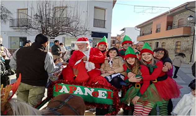 La visita de este personaje que poco a poco cobra mayor protagonismo en estas fechas, Papa Noel, ha sido posible gracias a dos colectivos de la localidad, el de San Antón y los Amigos del Caballo, que se han encargado de organizar todo y de encarnarse con las vestimentas adecuadas.