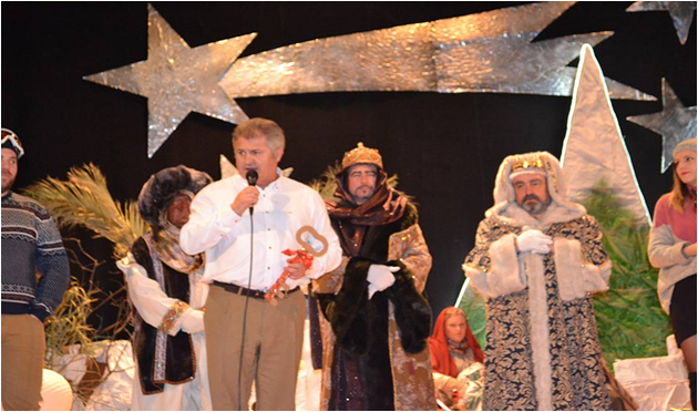 El alcalde, Pedro Casas, dio la bienvenida a Sus Majestades de Oriente y les hizo entrega de las llaves de la ciudad para que pudieran acceder a todas las casas de Miguel Esteban.