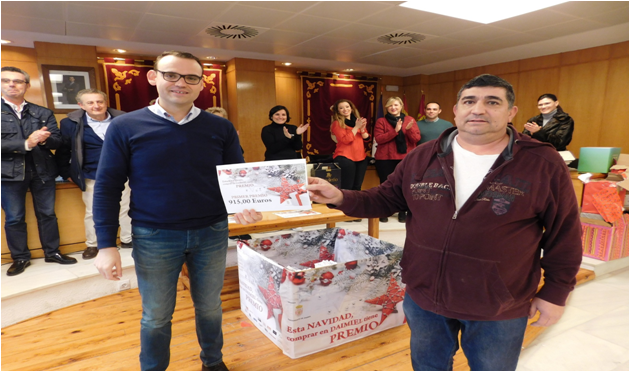Manuel Gómez del Moral ha sido el ganador del concurso 'Esta Navidad comprar en Daimiel tiene premio'. El pequeño Héctor, presente entre el público, era la mano inocente que, poco después de las 12:00 horas sacaba la papeleta de Gómez del Moral sellada en perfumería ‘Más Bella’. Tras llamarle por teléfono, se presentaba de inmediato en el Salón de Plenos del Ayuntamiento para recoger su premio: 915 euros a gastar en todos los establecimientos participantes.