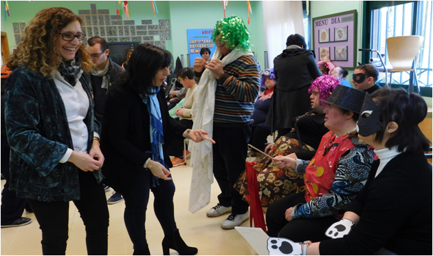 El Centro Ocupacional ‘Azuer’ celebraba este viernes su particular fiesta de carnaval. Hasta allí se ha acercado la concejal de Servicios Sociales Alicia Loro, quien ha valorado “la alegría y el colorido de los disfraces” de los usuarios así como el buen hacer en las actuaciones que han tenido que llevar a cabo. Y es que la fiesta ha girado en torno a una recreación del concurso televisivo ‘Tu cara me suena’, en la que no han faltado Chenoa, Bisbal, Malú o Chimo Bayo.