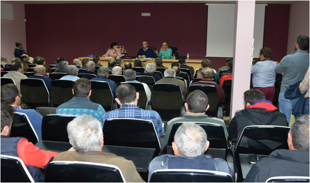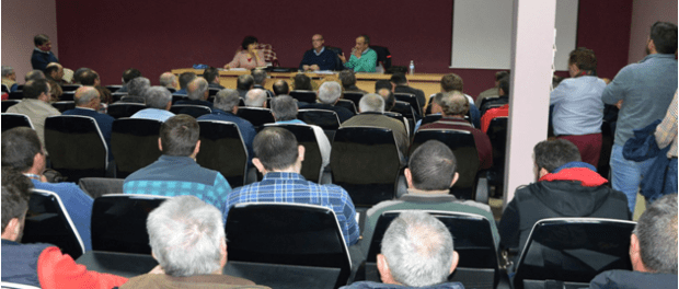 Durante la mañana del viernes más de doscientos regantes de la Comunidad de Usuarios de la Masa de Agua Subterránea Mancha Occidental I participaron en una jornada informativa impartida por el director del servicio de área de la Confederación Hidrográfica del Guadiana, Enrique Vilches, en la que, entre otros temas, los comuneros pudieron solventar dudas acerca de la tramitación de cesión de derechos de agua, acumulación de recursos hídricos, compra de nuevos derechos o cambios de emplazamiento de captaciones. El acto estuvo presidido por la asesora jurídica de la comunidad, Isabel Villaseñor y el presidente de la Masa de Agua Mancha Occidental I, Ángel Bellón.