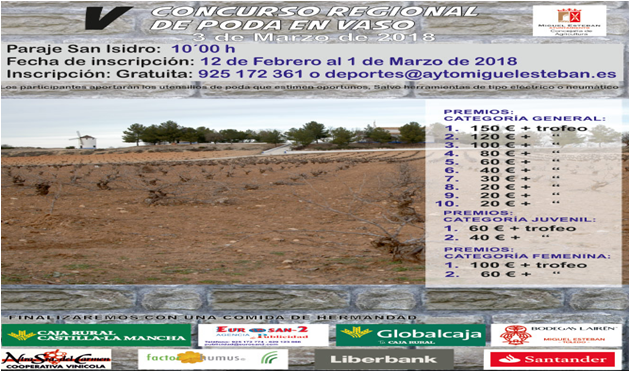 El próximo 3 de marzo, Miguel Esteban acogerá el V Concurso Regional de Poda de Viñedo en Vaso, organizado por el Ayuntamiento miguelete, a través de la Concejalía de Agricultura.
