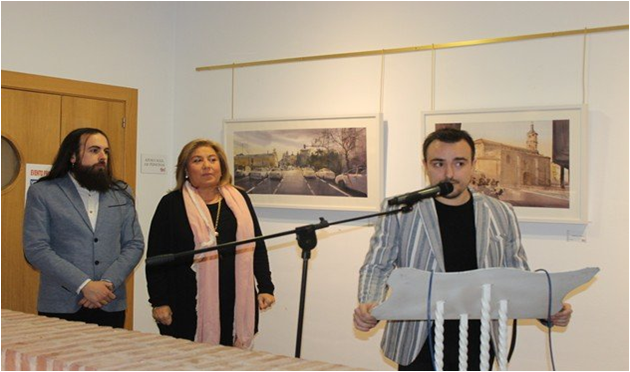 La muestra está compuesta por 24 obras, realizadas en acuarela, que retratan paisajes manchegos, colores del otoño, una vista de una calle malagonera, además de rincones cordobeses, madrileños, etc.