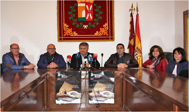 La presentación del cartel y del programa ha corrido a cargo del alcalde, Pedro Casas; del presidente de la Junta de Hermandades, Eugenio Caravaca; y del Hermano Mayor de la Hermandad del Santo Sepulcro y Cristo Resucitado, José Medina. Junto a ellos, también han estado presentes el pregonero de este año, Pedro Oliva; y las concejalas de Tradiciones y Cultura, Mari Nieves Patiño y Esperanza Ramírez, respectivamente.