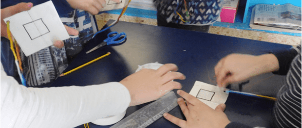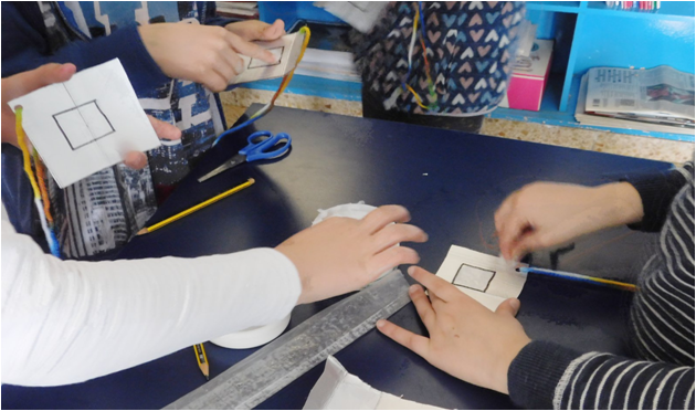 La científica daimieleña, María Teresa Baeza, que trabaja en la Escuela Ingeniería Industrial de Toledo de la Universidad de Castilla-La Mancha, ha compartido la mañana del viernes con varios grupos de alumnos del Infante Don Felipe un taller donde les ha enseñado a construir su propio capturador de partículas. Un sencillo cuadrado sacado de un cartón de leche que, con vaselina en el centro, servirá para detectar las zonas del colegio que presentan mayor contaminación.