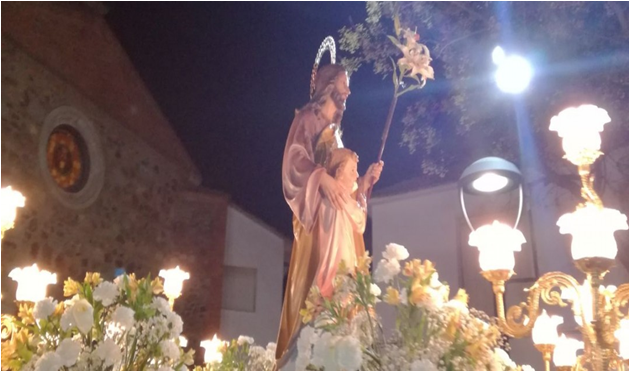Ya por la noche San José recorrió las calles de nuestra localidad, acompañado por la Reina ,Damas de Honor , el Hermano Mayor de la Hermandad y la Junta Directiva y las autoridades locales.