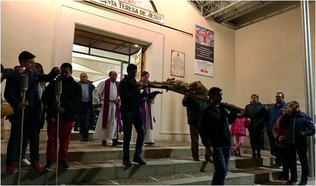 Así y cuando llegaron las 22:30 horas, en la Iglesia de Santa Teresa de Jesús, se inició un viacrucis interparroquial, con los dos párrocos de la localidad, que tuvo su inicio y su final en la mencionada parroquia y a la que acudieron numerosos fieles para rezar y compartir momentos de recogimiento y oración.