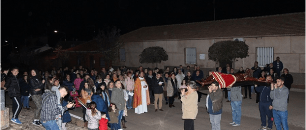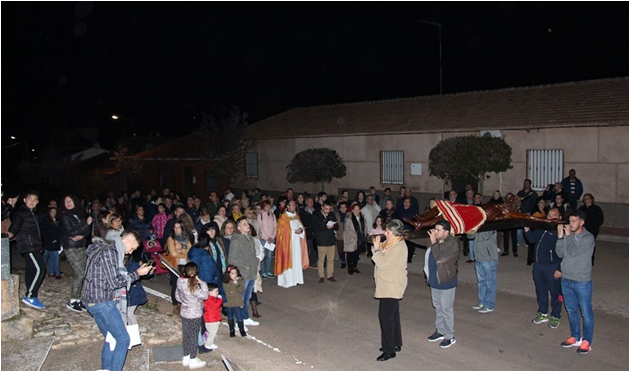 La imagen de nuestro patrón fue portada por vecinos de la aldea y de Malagón, haciendo paradas para leer una oración y para rezar en las estaciones que lleva implícita el viacrucis.