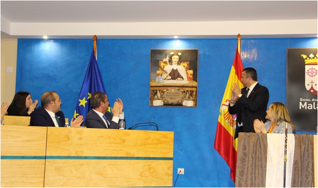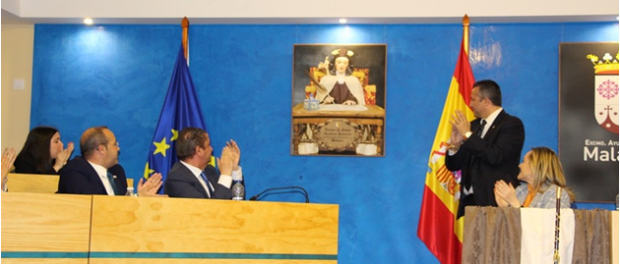 Para finalizar el acto, el alcalde de Malagón, Adrián Fernández Herguido descubrió un cuadro que a partir de ayer presidirá el Salón de Plenos, junto al del Rey. También colgó junto al anterior título de Hija Adoptiva y Predilecta de nuestra localidad este nuevo título de Alcaldesa Honoraria. También entregó al presidente de la Cofradía de Santa Teresa, Alberto Monteagudo, unas réplicas del cuadro y del títúlo de Santa Teresa.