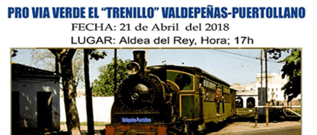 Este II Encuentro Pro Vía Verde ‘El Trenillo’ Valdepeñas-Puertollano se celebrará en dependencias municipales del Consistorio en la segunda planta del edificio del Casino aldeano, a las cinco de la tarde del 21 de abril.