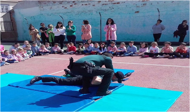El Colegio de Educación Infantil y Primaria (CEIP) ‘Maestro Navas’ de Aldea del Rey fue el pasado viernes el escenario de una extraordinaria exhibición a cargo de agentes de la Guardia Civil, que mostraron ante todo el alumnado y profesorado algunas de las acciones que llevan a cabo en el día a día en pro de la seguridad de bienes y personas.
