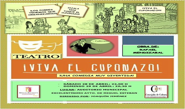 El Taller Municipal de Teatro de Adultos de Miguel Esteban pondrá en escena este fin de semana la obra ‘¡Viva el cuponazo!’.