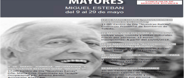 El 23 de mayo, a las 11,00 horas, en el Centro de Día ‘Nuestras raíces’, la Policía Local de Miguel Esteban ofrecerá una charla sobre autoprotección en las personas mayores.