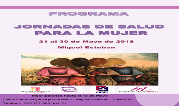 Del 21 al 30 de mayo, Miguel Esteban celebrará las Jornadas de Salud para la Mujer. Talleres, charlas, desayuno saludable y una ruta de senderismo son algunas de las propuestas de esta iniciativa organizada por la Concejalía de Igualdad y el Centro de la Mujer de Miguel Esteban.