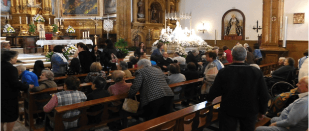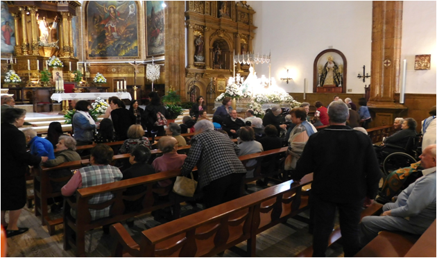 Los usuarios de las distintas residencias de la localidad han visitado este jueves a la Patrona en la iglesia de San Pedro dentro de un acto organizado por la Hermandad Nuestra Señora de las Cruces. Cada año se aprovecha la circunstancia de la estancia en Daimiel de la imagen de “La Morenita” para realizar un encuentro con los usuarios de las residencias daimieleñas, antes del regreso al Santuario que será el 20 de mayo en la Romería de Pentecostés.
