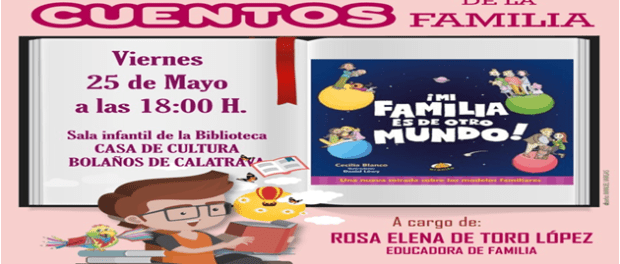 La Biblioteca y el Área de Educación Social del Ayuntamiento de Bolaños han organizado un Cuentacuentos para el próximo 25 de Mayo a las 18:00 horas en la Biblioteca para conmemorar el día de las familias.