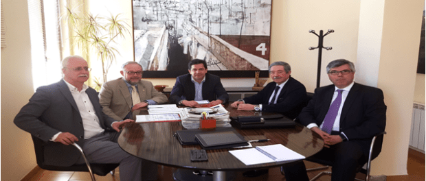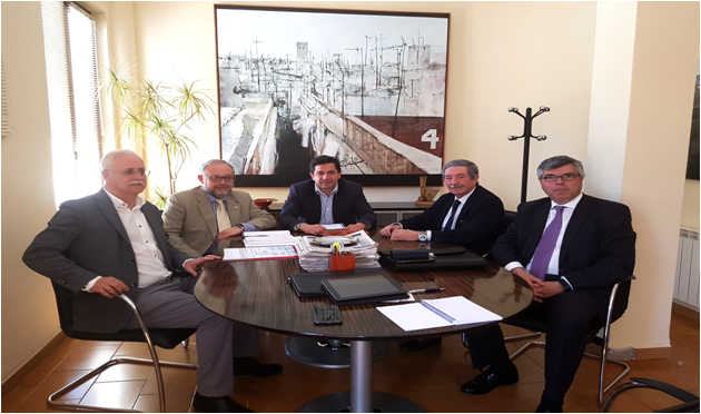 El presidente de la Asociación y de la Mancomunidad del Campo de Calatrava, Miguel Ángel Valverde, y el gerente de la Asociación, Carlos Corella, se han reunido con el presidente de CRIA, Rafael Gómez Arribas, el director técnico, Agustín del Pozo, y el técnico Javier Morales, para conocer de primera mano cómo se encuentra esta iniciativa.