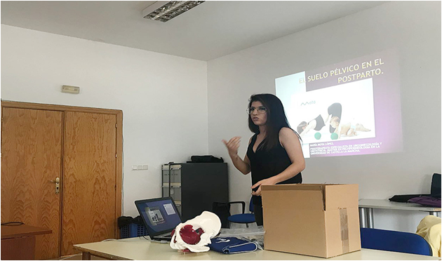 El suelo pélvico también ha sido uno de los temas principales que se han abordado en estas Jornadas de Salud para la Mujer. La fisioterapeuta especialista en suelo pélvico, María Mota, impartió una charla sobre el suelo pélvico en el postparto.