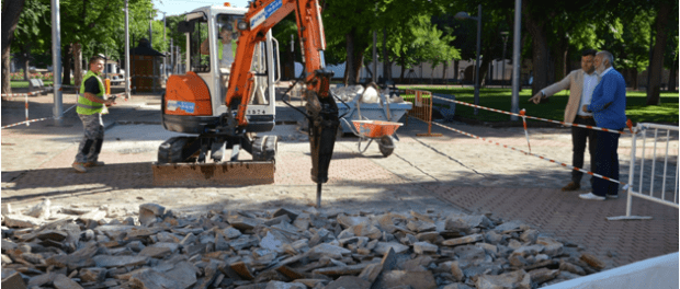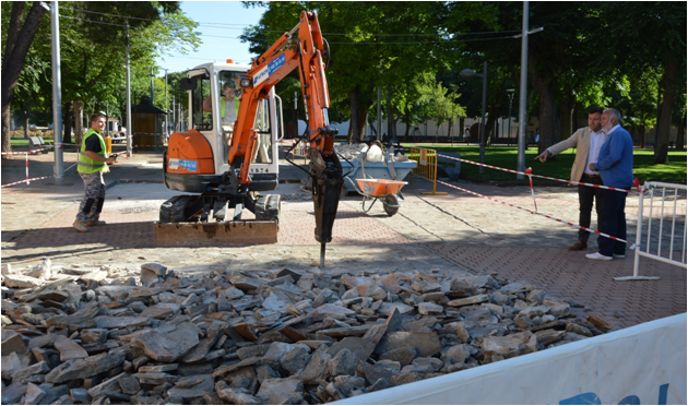Las áreas que se están ejecutando son las dos diagonales principales del Parque; la que conecta la entrada desde calle Arenas con el Recinto Ferial y la que va del instituto Ojos del Guadiana hasta las inmediaciones del Centro Cívico El Carmen. Se eliminarán las zonas de lajas de piedra y se sustituirán por hormigón pigmentado semipulido, como explicaba el ingeniero técnico del Ayuntamiento de Daimiel, Plácido Sánchez-Camacho.