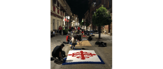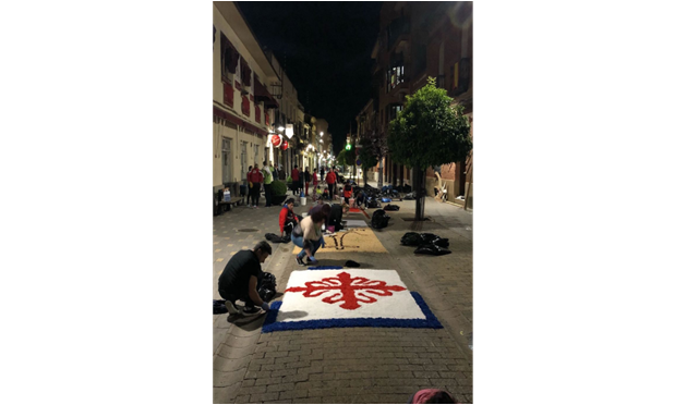 Nos referimos, evidentemente, a la preparación de los altares y las alfombras de serrín y flores para la procesión.