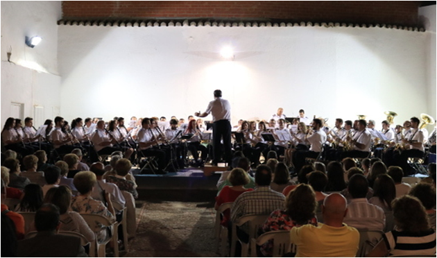 Junto con la subida de temperaturas propias del mes de junio, y con la temporada estival a las puertas, también arrancan los ciclos de Conciertos de Verano de la Banda Municipal de Daimiel. Como muestra de ello, durante la noche del viernes, más de un centenar de personas pudieron deleitarse con las melodías de instrumentos de viento y percusión en su emplazamiento habitual para estas citas, el patio exterior del Museo Comarcal.