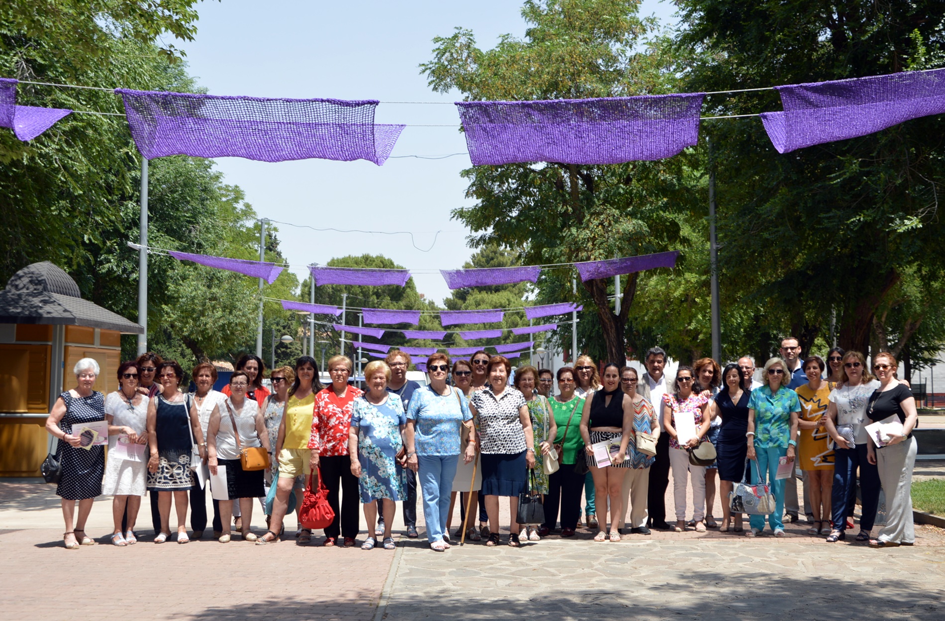 El Ayuntamiento de Daimiel, a través del Centro de Mujer, rindió homenaje este martes a las 60 participantes del proyecto municipal denominado ‘Sombras por la Igualdad’ que ha consistido en la elaboración manual de 47 toldos violetas de plástico ya visibles en el parque El Carmen. El alcalde de Daimiel, Leopoldo Sierra, acompañado de la concejal de la delegación responsable, Alicia Loro, reconocieron el compromiso de estas singulares artesanas anónimas que se sumaron al cometido de confeccionar estos especiales palios cargados de simbolismo por la Igualdad como se constató durante el acto.