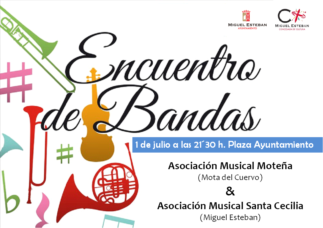 La Plaza del Ayuntamiento de Miguel Esteban acogerá este domingo, 1 de julio, a las nueve y media de la noche, el tradicional Encuentro de Bandas organizado por la Concejalía de Cultura.