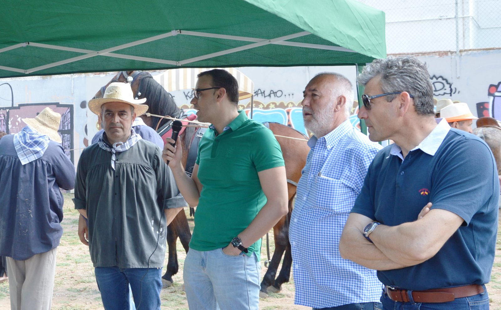 Un trabajo muy habitual en los meses de verano y que precisaba del calor para separar el grano de la paja, como recordaba uno de los socios de la peña equina, Basilio Menor. Historias que compartía por el mayoral de este año, Aquilino Escuderos, que haciendo honor a su cargo se encargó de ordenar el trabajo, aunque tampoco dudó en subirse a dar varias vueltas en la trilla.