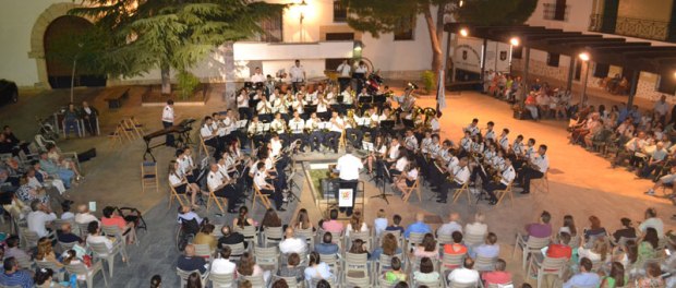 Piezas musicales de diferentes épocas y estilos inundaron de sonido y magia la Plaza del Ayuntamiento de Miguel Esteban en el Encuentro de Bandas organizado por la Concejalía de Cultura.
