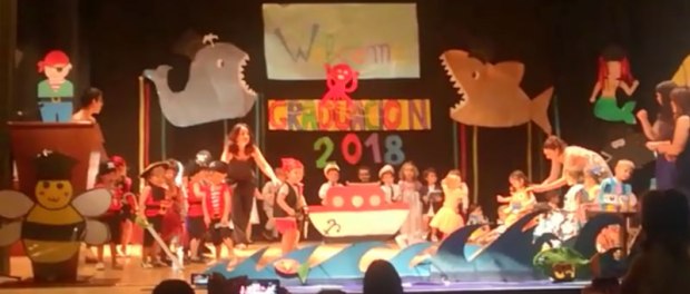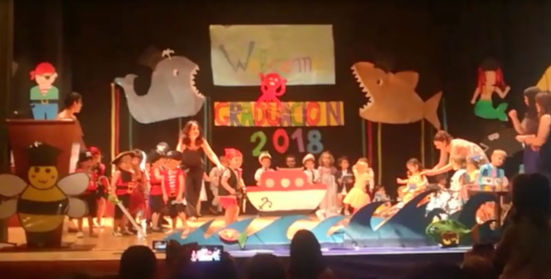 Con un divertido espectáculo basado en series, anuncios y películas relacionadas con el mar. También se celebró el acto de graduación de los alumnos de 2-3 años