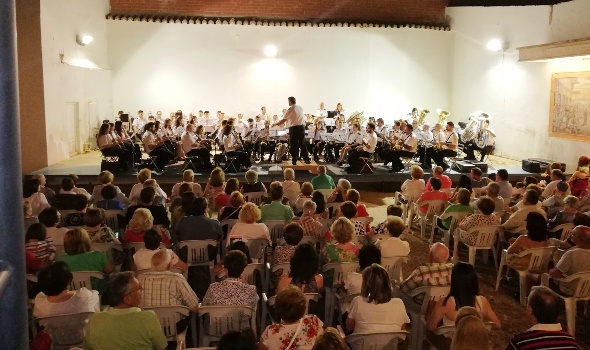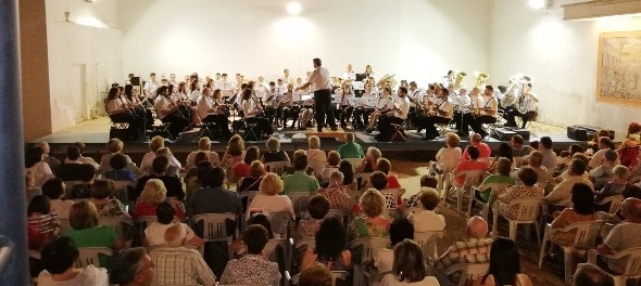 La Banda Municipal de Música puso este viernes el broche final al ciclo de conciertos de verano de este año. Las temperaturas veraniegas invitaron a disfrutar de esta despedida, que consiguió que el patio del Museo Comarcal completara su aforo e, incluso, lo sobrepasara con más de 200 personas. La propuesta musical, en esta ocasión, contó con un repertorio diverso que encandiló al público daimieleño, como demostró con sus ovaciones.