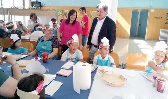 La mañana se ha desarrollado entre manualidades creadas por cada una de las generaciones de forma conjunta, además de la elaboración de una tarta de obleas y nocilla. Estas actividades se han realizado en dos turnos (de niños y de mayores), y han disfrutado con ellas casi un centenar de nietos y nietas.