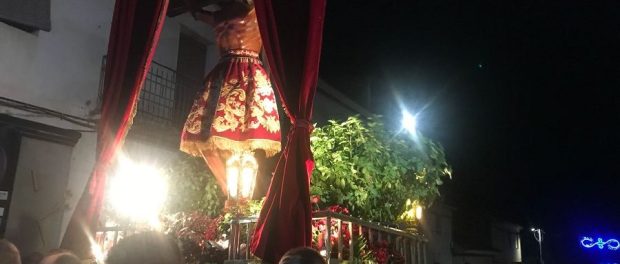 Tras la quema de castillos y fuegos artificiales, la imagen realizo su recorrido habitual y llegó hasta la parroquia.